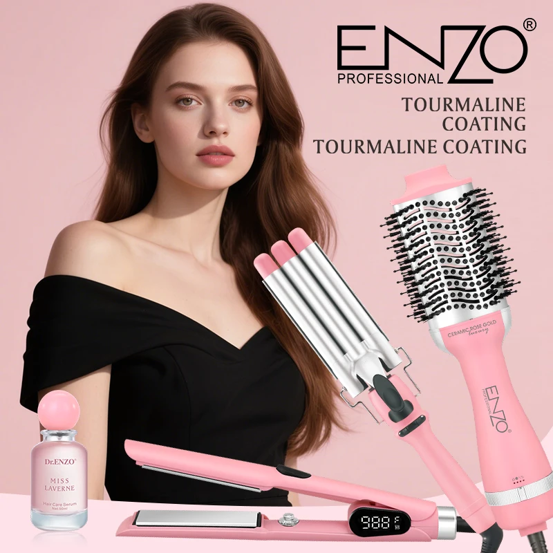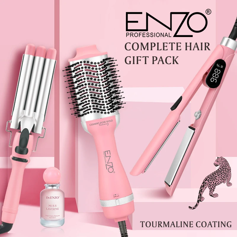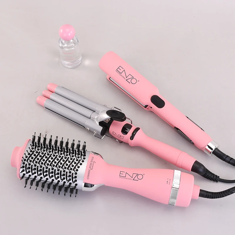 `ENZO EN-5611 Kit de coiffure pour salon de beauté 4 en 1 Lisseur trois seaux fer à friser une étape Sèche-cheveux à air chaud Ensemble de brosses